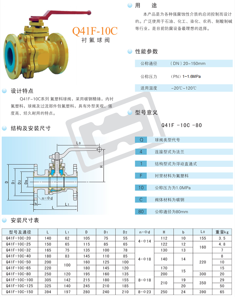 Q41F-10C系列襯氟球閥,閥殼采用碳鋼精鑄,內(nèi)襯氟塑料,閥球及過流部件包氟塑料,具有外型美觀、強度高、經(jīng)久耐用的特點。